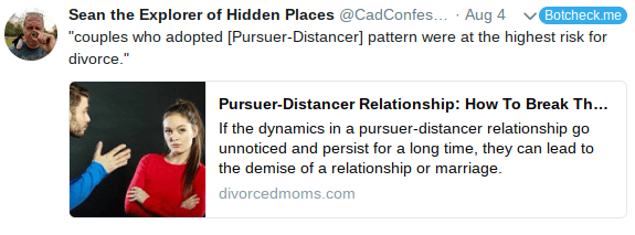- The Pursuer-Distancer Dynamic sabotages my ability to be patient and loving