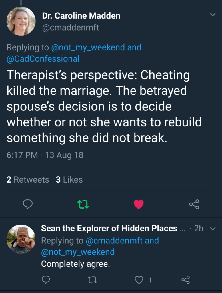 - The behaviors of my ex post reveal is consistent with her behaviors before the reveal but I excused her betrayals because of mine