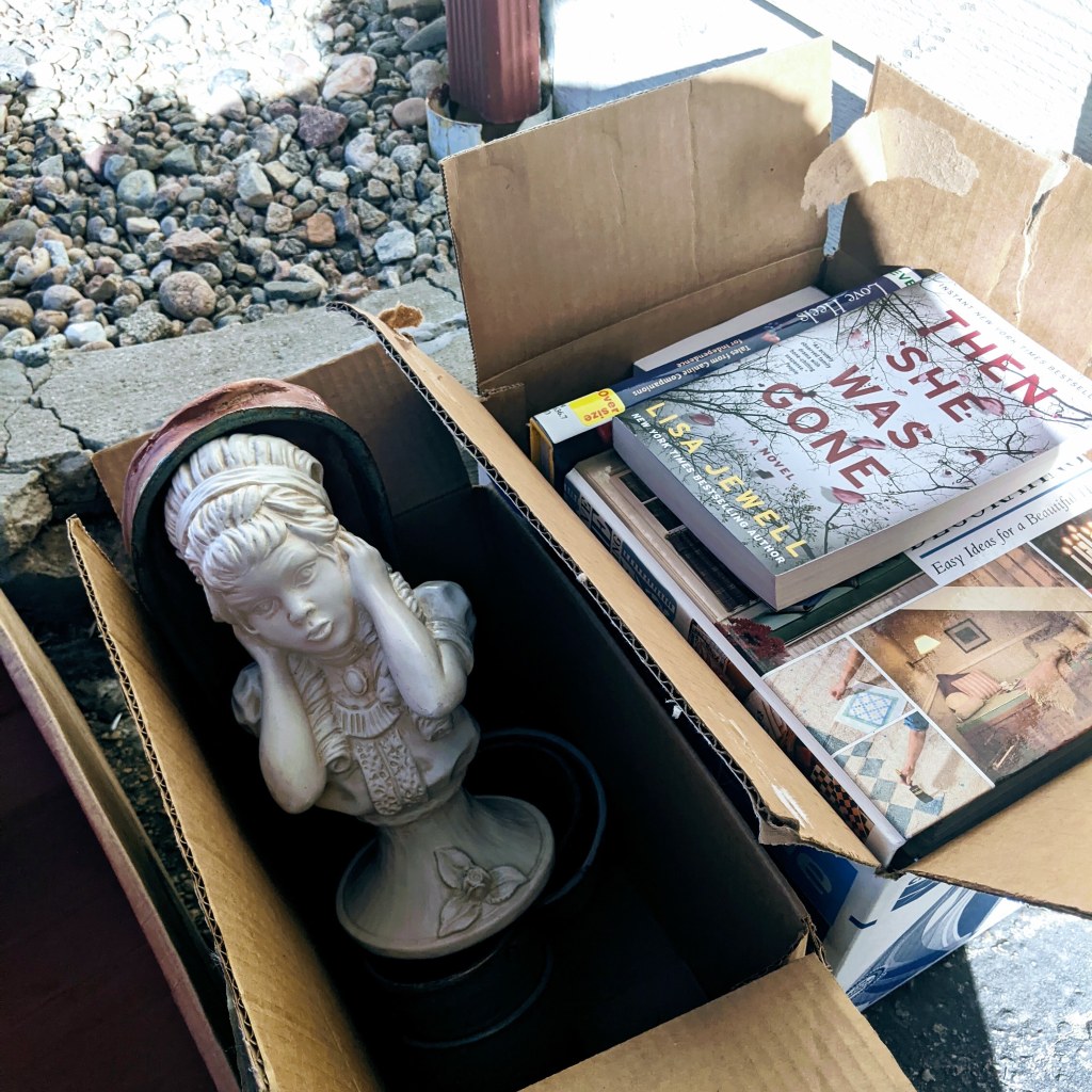 When I finished I tossed the little girl critic into the truck with a dozen boxes of thrift store donations and put the boy on the porch next to Buddha.