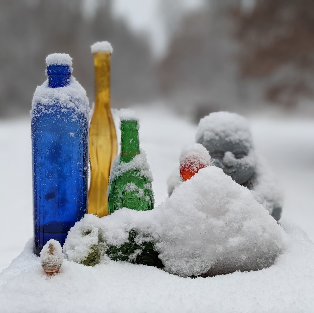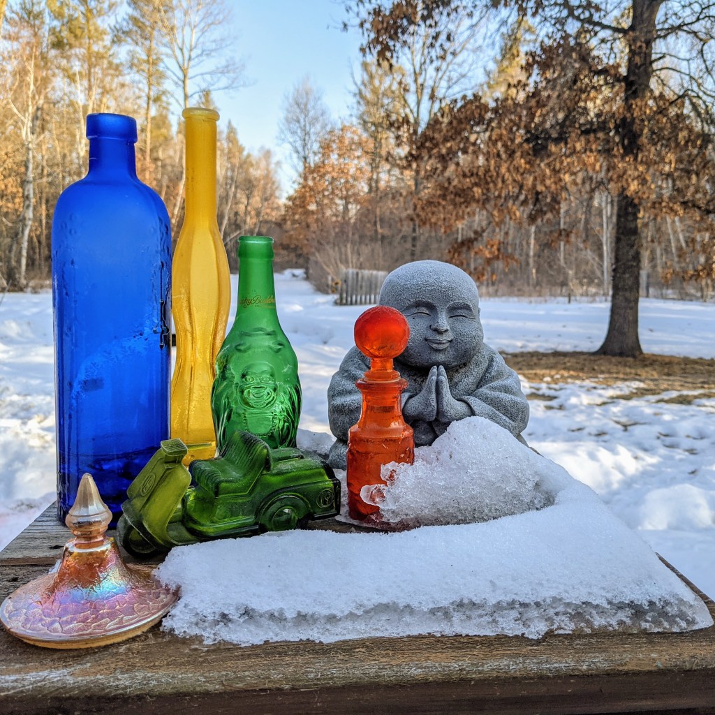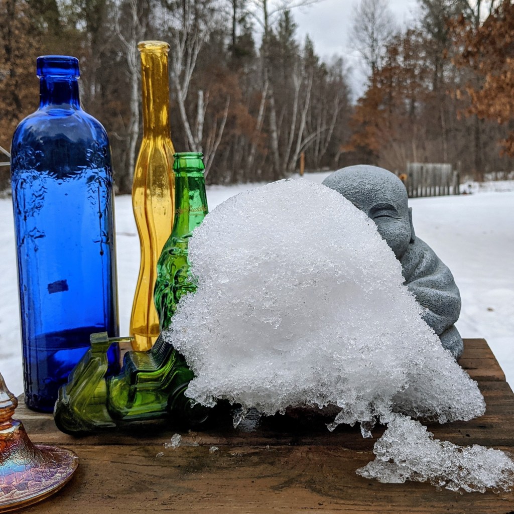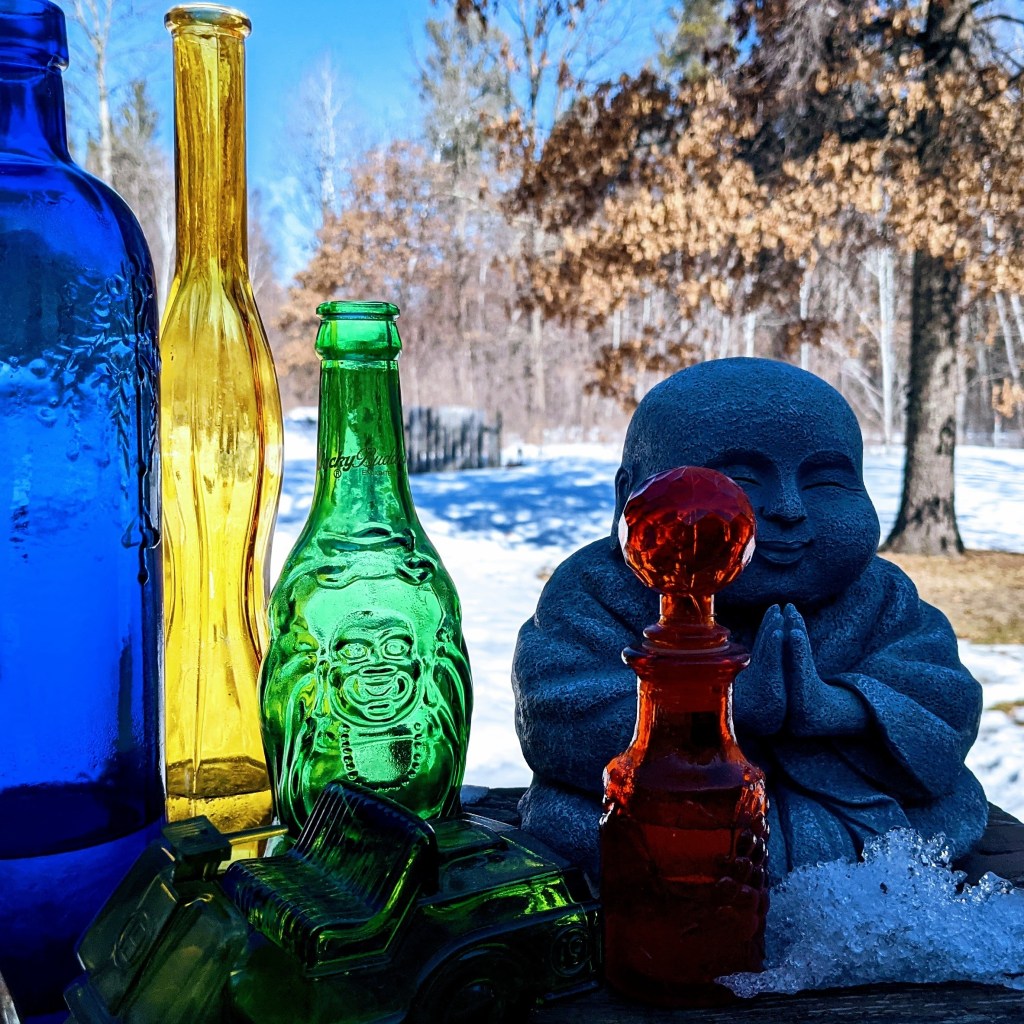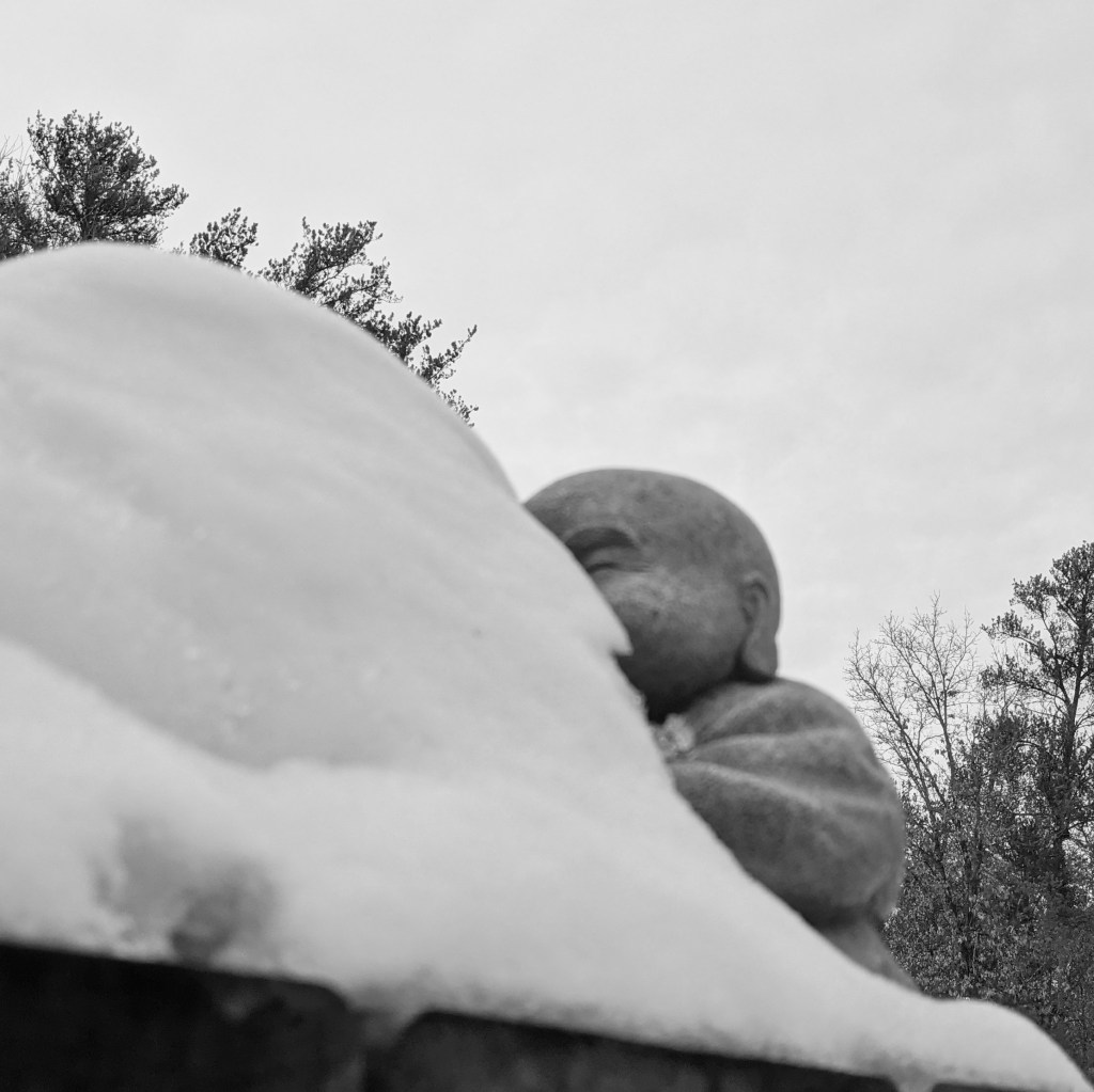 It’s similar to what I see when I look at the Buddha statues in my yard. As I move about and refocus, how I see the figures at the moment changes mood to mood, season to season. It is the same with trauma: trauma will always remain, but with intentional practice, I experience it changes moment to moment and season to season.