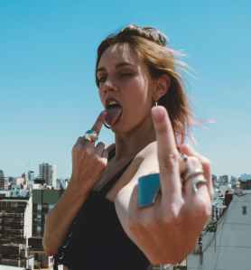 woman making hand sign